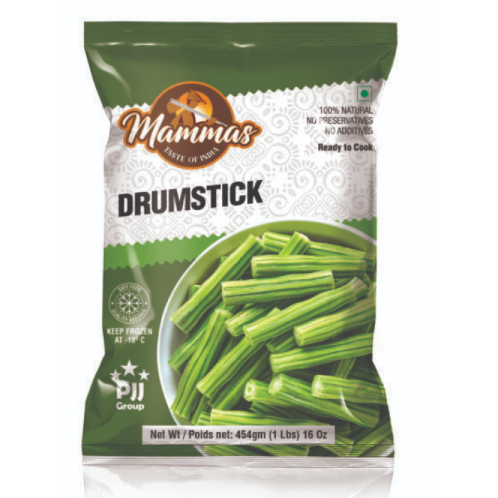 Pre-cut drumstick segments, frozen for convenience, ideal for sambar, stews, and South Indian meals.